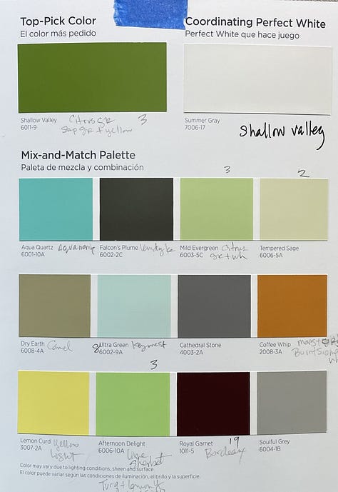 The first thing that worked was surprisingly ordinary. Whenever I’m in a hardware or paint store, I grab the pre-made color palette cards in the paint section. You know, the ones designed to help someone choose coordinated wall paint colors for their entire home without overthinking it.